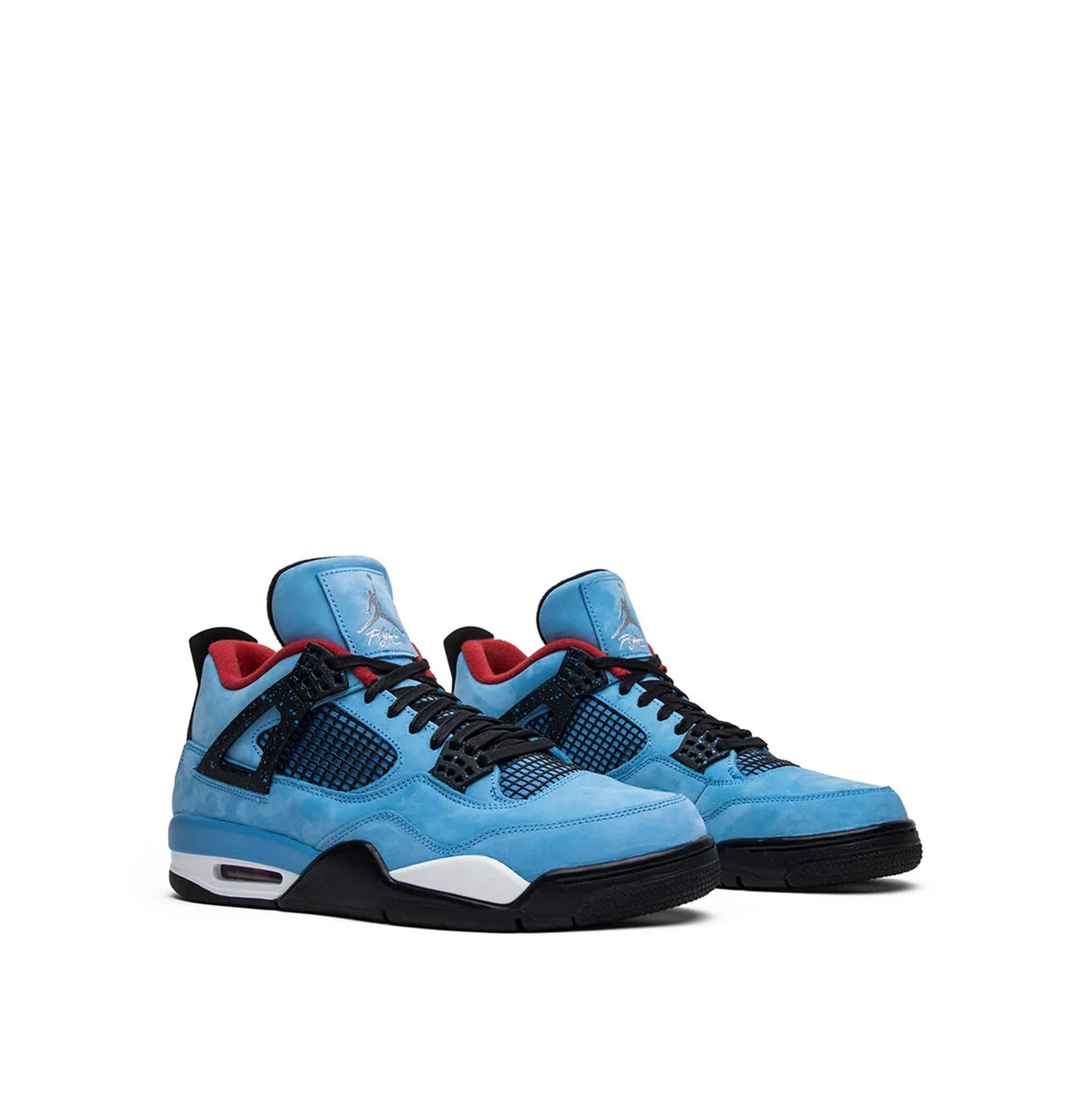 Кросівки Travis Scott x Air Jordan 4 Retro 'Cactus Jack' присвячені рідному місту репера - Х'юстону. Палітра кросівок запозичена з командних кольорів колишньої футбольної команди міста "Ойлерс" і включає верх зі шкіри Durabuck університетського синього кольору, а устілки та брендинг - червоного кольору "Varsity Red". Доповнюють образ чорна мереживна клітинка та панель на п'ятці в цяточку.
