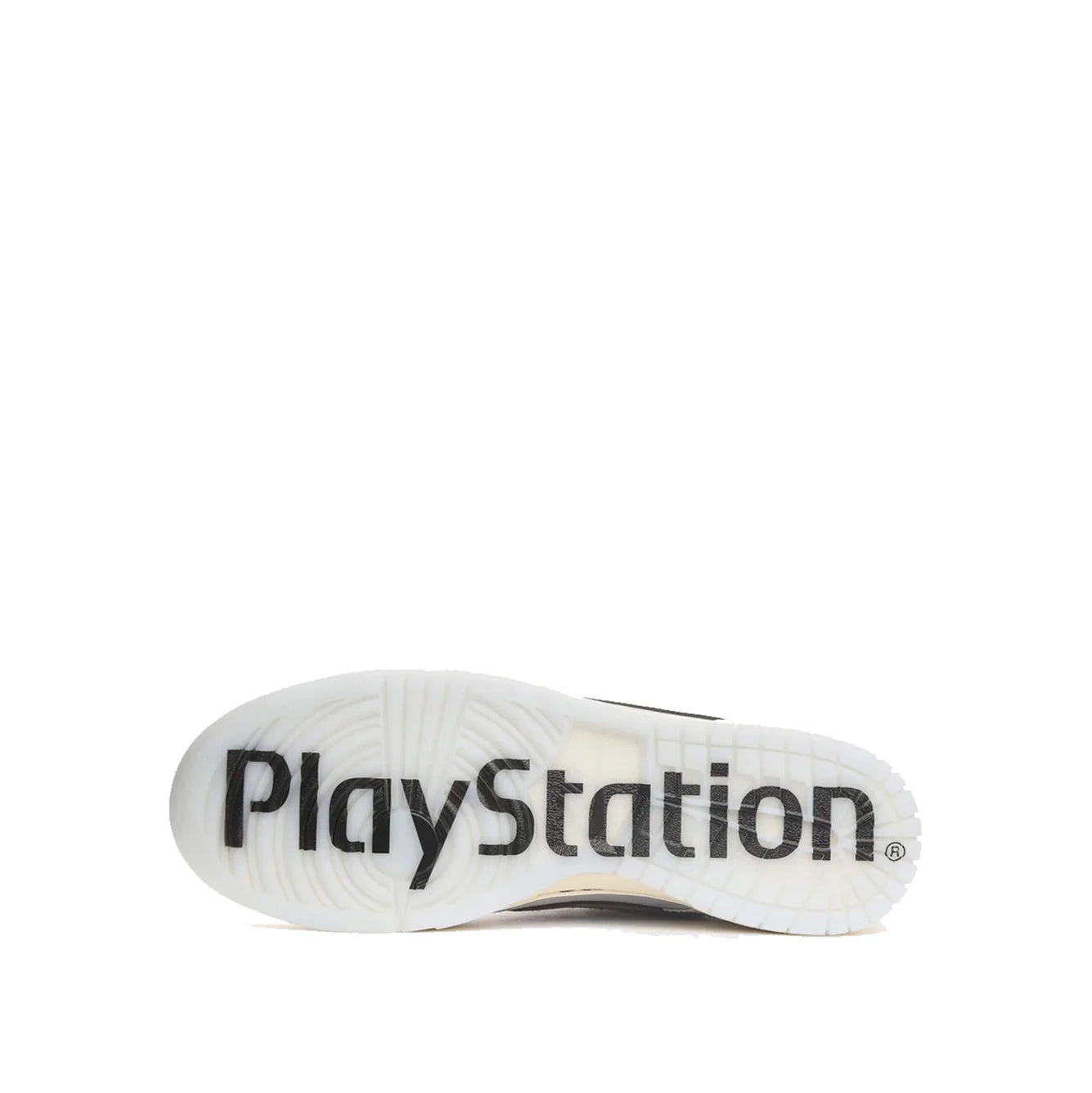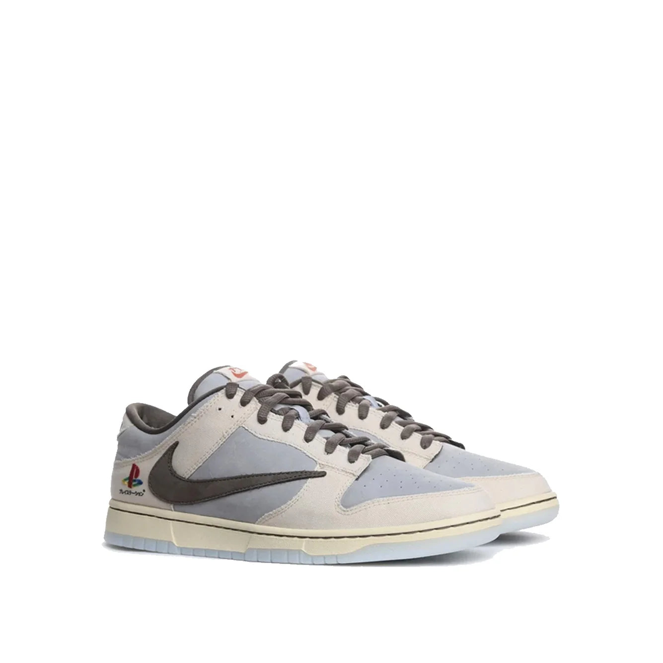 Х'юстонський репер вирішив підштовхнути продажі PlayStation 5, показавши кросівки Travis Scott x Playstation x Dunk Low на своїх соціальних медіа в жовтні 2020 року. Деталі розіграшу він оголосив через свій власний веб-сайт. Верх кросівок поєднує сіру замшеву тканину з кремовими текстильними нашивками та темно-коричневим Swoosh. Зовнішня частина кросівка прикрашена графічним зображенням PlayStation, а логотип Sony вишитий на п'ятці. Підошва, яка має прозорий вигляд, відображає напис "PlayStation" англійською на правому кросівці та японською на лівому.