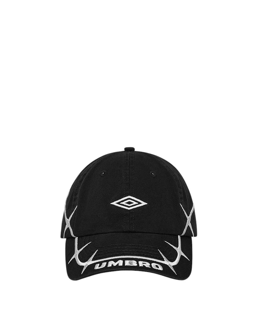 Umbro x Slam Jam Spines Cap — бейсболка, що поєднує ретро-спортивну естетику з духом сучасної вуличної моди. Виготовлена з міцного бавовняного твіллу, модель має класичну шестипанельну конструкцію з вентиляційними люверсами, вигнутим козирком і регульованим ремінцем для індивідуальної посадки.
